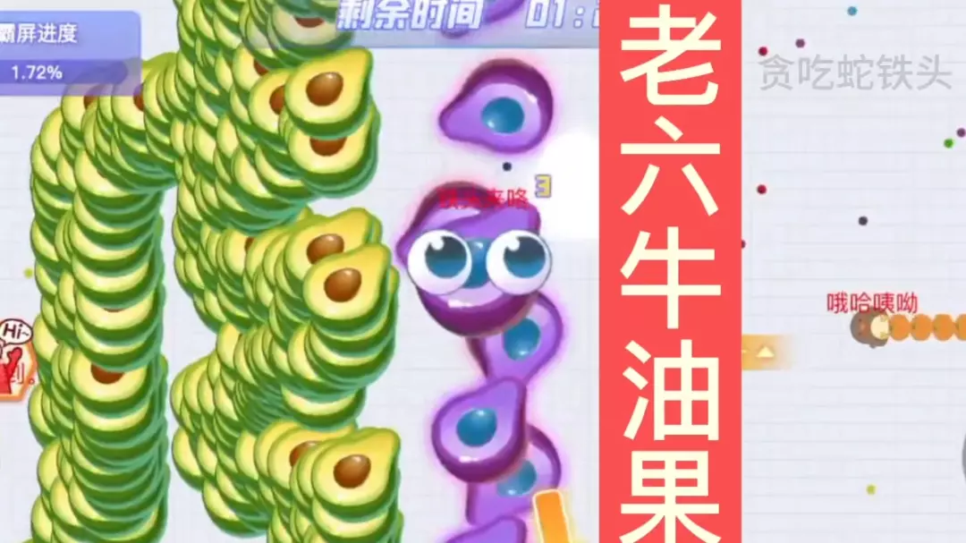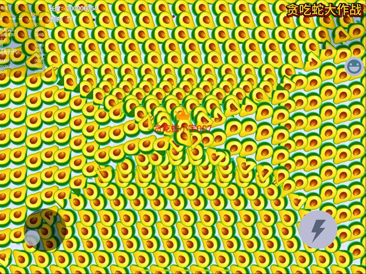 这是贪吃蛇大作战的游戏对局,博主使用牛油果皮肤贪吃蛇作战,依靠灵活操作不断击杀其他贪吃蛇,快速增长长度提升霸屏进度,操作十分出彩,牛油果皮肤被玩家称为老六皮肤。