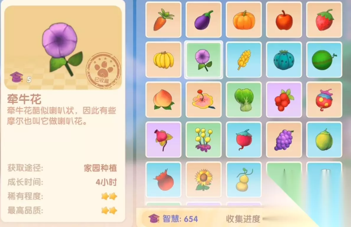 3、香蕉:家园特产,去家园特产是香蕉的人家里摘; 4、牵牛花:种子商店购买种植。