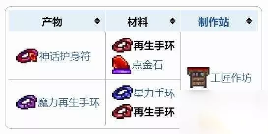 泰拉瑞亚红色手环 再生手环获得方式 再生手环是游戏中一种配饰,装备后,每秒恢复1(电脑版)/0.5(移动版/主机版/前代主机版/3DS版/Switch版/ModLoader支持版本)生命,该效果可与玩家的自然生命恢复叠加。而且该效果在玩家移动或被攻击时不会变慢或停止。 获得方法 开宝箱获得:再生手环可以在地下洞穴生物群落和地下丛林里的生命红木树中的金箱找到。 内部ID 内部物品 ID:49 制作 神话护身符制作:1个再生手环和1个点金石,可以在工匠作坊合成1个神话护身符。 魔力再生手环制作:1个再生手环和1个星力手环,可以在工匠作坊合成1个魔力再生手环。