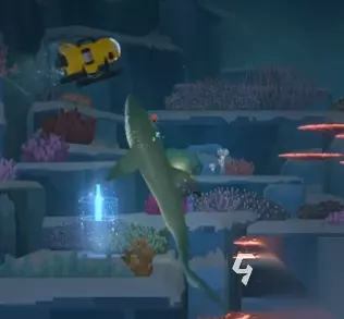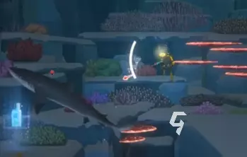 这个下潜的位置可以从灯光上判断,当大家需要开灯的时候,那就代表到位置了,之后大家需要前往深水区的珊瑚从区块中,在这里就能看到灰鲭鲨了,看到后大家可以活抓,也可以死抓。