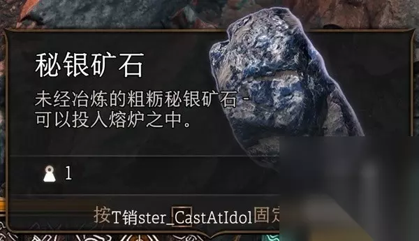 挖矿的前提还得装备一把十字镐,实在找不到就去瘟疫村庄死灵书地下室房间外面一堆棺材的地方有一把十字镐,或者在复仇之炉遭遇的果冻怪身上也会掉落(更正,只要是带有穿刺属性的武器就能挖矿)