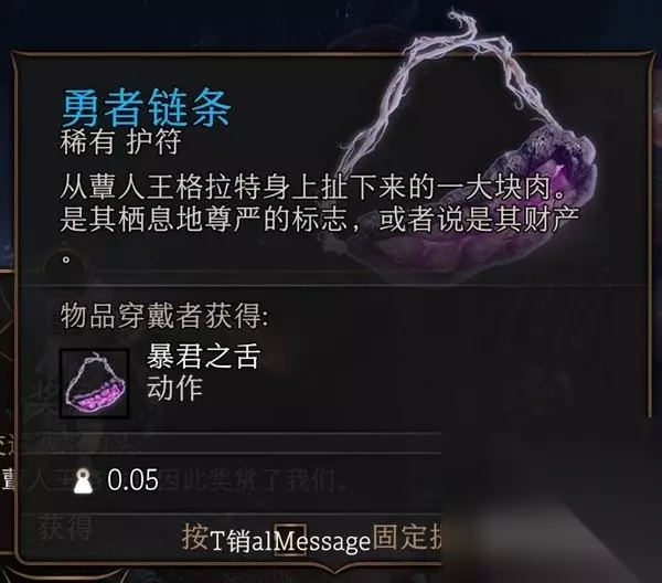 使者护符/勇者链条 获得的物品取决于你准备帮哪个蕈人王,如果帮原来的老大为民除害干死格鲁特然后再干死岩浆堡垒的卓尔就能获得使者护符,反之如果你准备当带恶人,那么最后待会卓尔人头就会给你勇者链条
