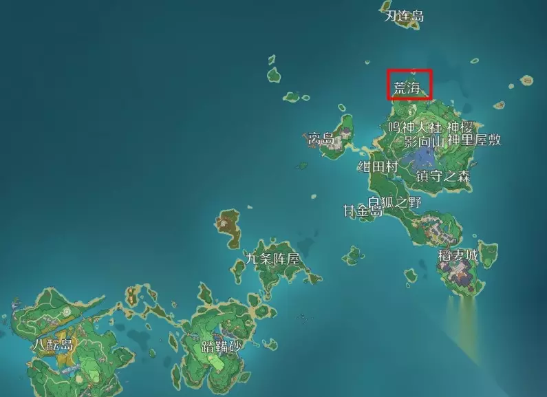 在原神这款游戏中,荒海的位置是在鸣神岛。荒海属于鸣神岛的一部分,位于鸣神岛的上半部分,玩家到达鸣神岛之后,往岛的上半部分区域走,就可以到达荒海。荒海上方的小岛是刃连岛。