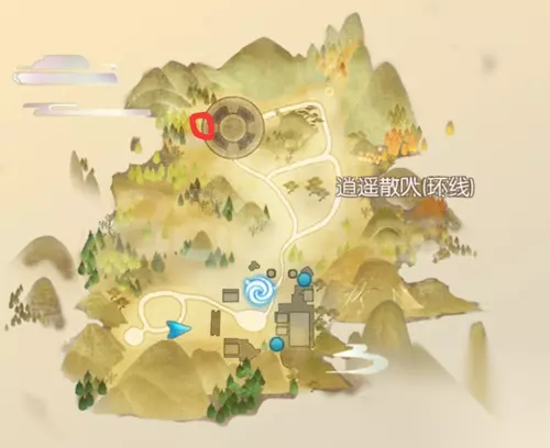 鸣沙荒漠,标记的红点是99级BOSS的刷新点 【109级】