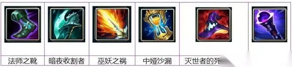 一、出装顺序 法师之靴+暗夜收割者+巫妖之祸+中娅沙漏+灭世者的死亡之帽+虚空之杖