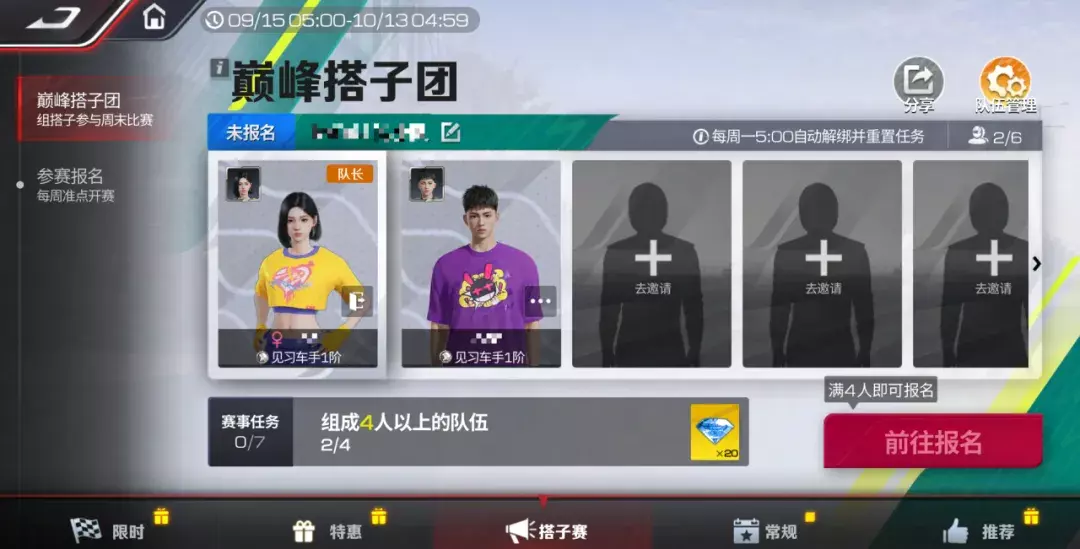 不管你是想寻找“CP巅巅”的灵魂搭档,还是只想做被全队抱紧的“巅峰大腿”,这次我们都给你准备好了最甜的组队体验、最香的奖励礼包~就等你一脚油门,冲进我们的心动赛道!