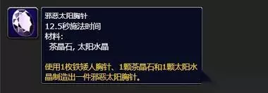 专业制造 如果玩家有足够高的锻造专业技能,也可以通过制造来获得邪恶太阳胸针。这就要求玩家提前收集好制造所需的各种材料,并不断提升锻造技能等级。在满足制造条件后,就能够亲手打造出这件心仪的装备,享受专业技能带来的成果。 获取邪恶太阳胸针需要玩家付出一定的时间和精力,通过副本掉落、任务奖励、声望兑换或者专业制造等多种途径去尝试。只要坚持不懈,就一定有机会将这件强大的邪恶太阳胸针收入囊中,助力角色在游戏中更加强大。