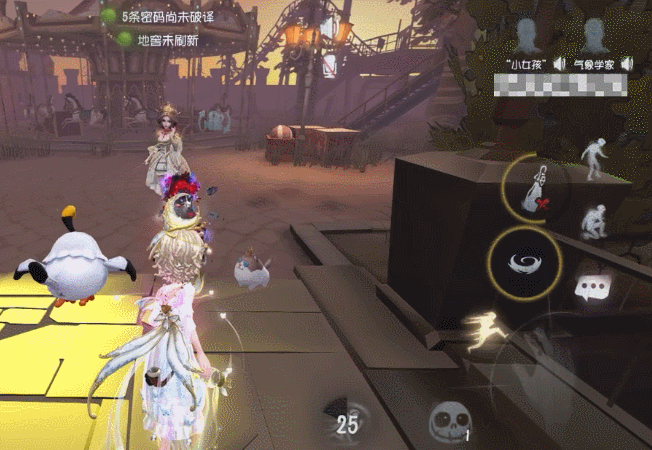 ② 由于监管者时空之影“异族本相”技能可打断气象学家的技能释放。所以在面对时空之影时,要注意调整视角的朝向避免被打断技能。实战中当时空之影贴近时,可使用强风将其推走拉开身距。
