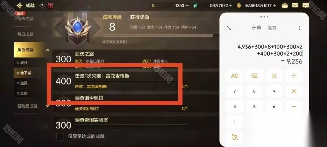 《DNF手游》九级成就达成方法 一、九级成就达成方法 必要条件:通关灾难雷龙,通关灾难雷龙这个任务完成就有400点 其余条件:完成5个角色成就任务和其他普通任务,升九级需要9000点数 灾难雷龙上线后,增加了五个角色成就任务,共计增加了1150成就点数,全部成就任务完成后可以达到9236的成就点数,升九级只需要9000点数,但仅“通关灾难雷龙”这一个任务就占据了400点,所以必须通关灾难雷龙才能够升九级。