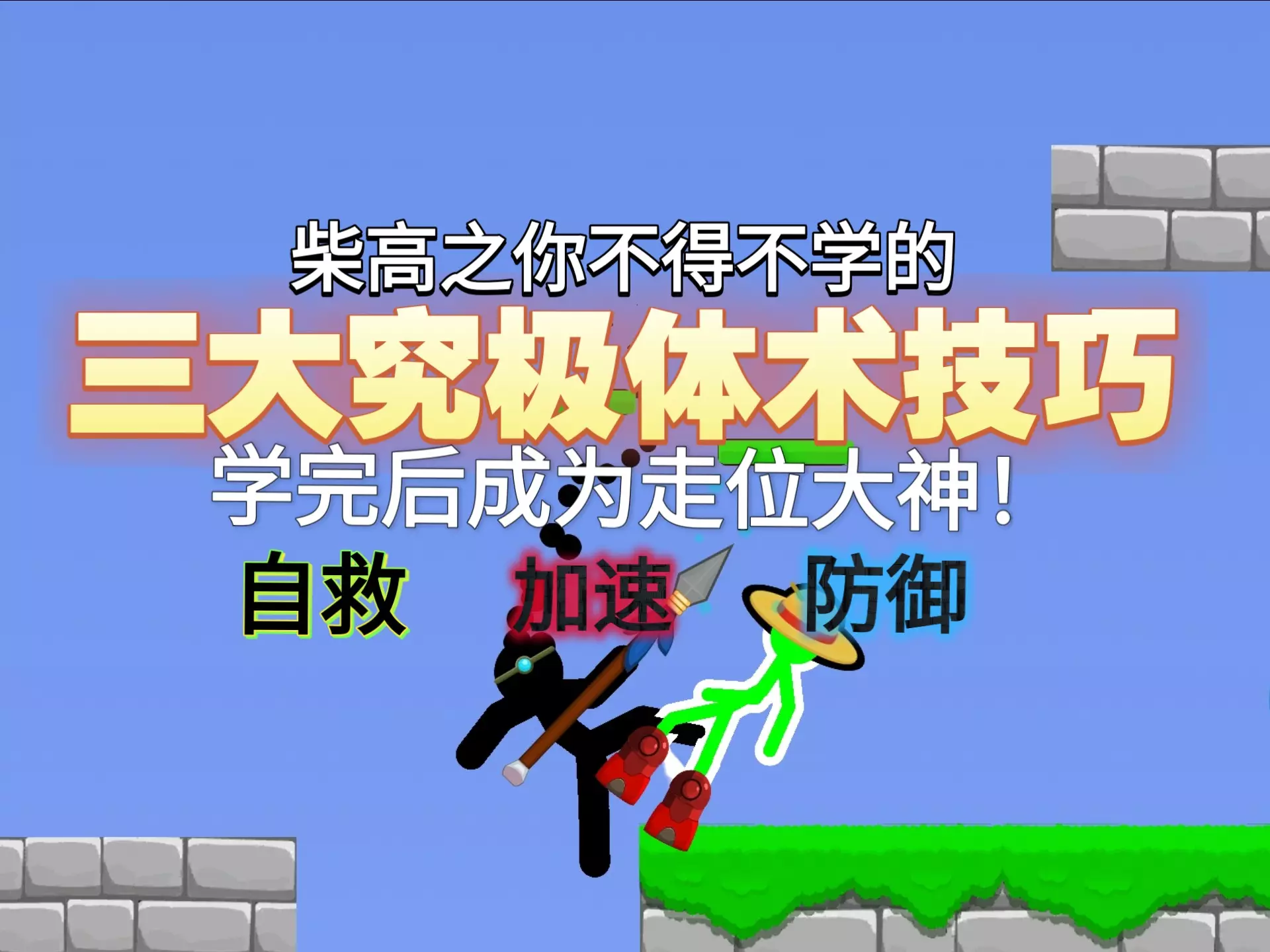 这是关于《火柴人至高对决》的内容,探讨画笔是否适合拉扯玩法,还讲解了大风车操作技巧,即开局跳跃用墨水击中对方,拉开距离后可将敌人甩飞,并展示了相关实战场景。