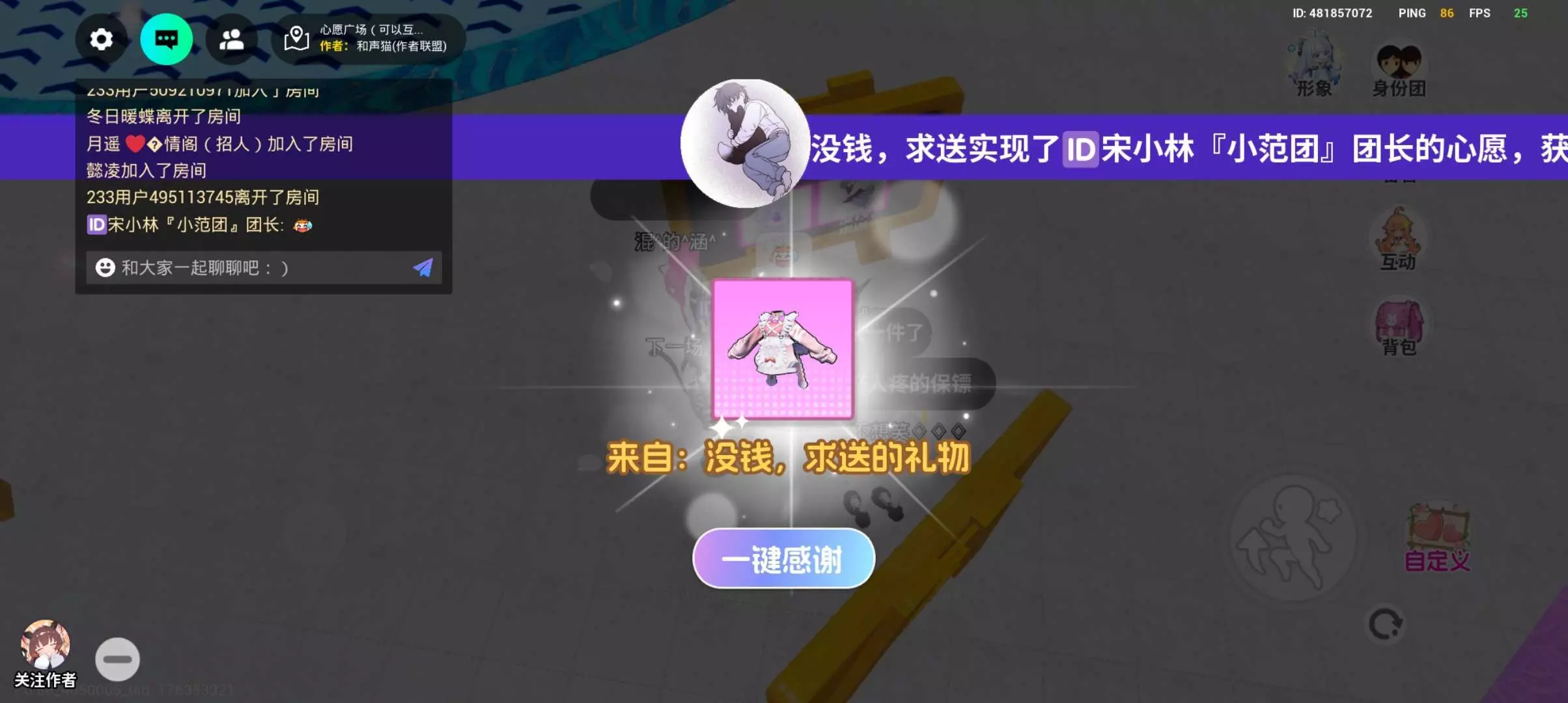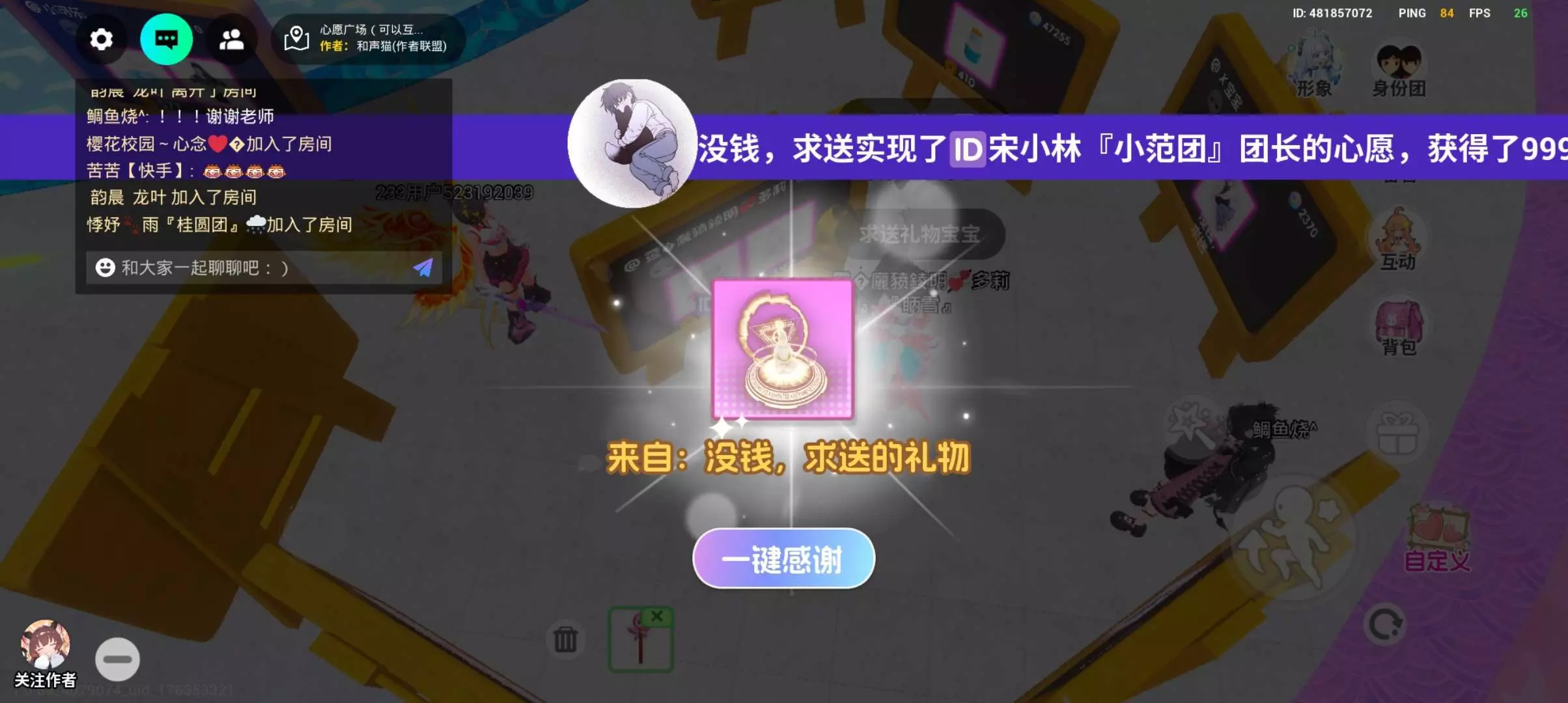 关注我心愿广场可以送你