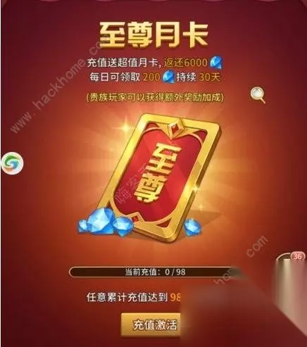 开局之后,有能力的玩家可以充个首冲,6块钱不贵,还能让你前期快速推图,还是很划算的。 玩手游的童鞋应该都知道月卡的存在,月卡的性价比很高,每天都可以领取 到一定量的钻石,这个游戏的月卡开通方式和别的游戏有所不同。