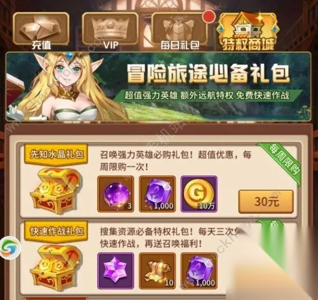累计充值到一定额度自动开通,以下我推荐大家开通以下两个两个礼包,就可以同时激活两个月卡。第二个月可以通过购买98元的成长基金来激活这两张月卡。先知水晶礼包和快速作战 快速作战对于微氪玩家还是挺有用的,可以获取大量的经验升级,还可以获得大量的情报点。