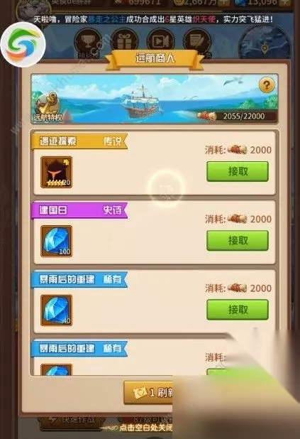 首先,大家进入游戏后,不要忙着氪金,先跟着引导做任务升级到20级左右(ps:游戏每5级送500钻石)。当我们背包有接近3000钻石的时候,这个时候我们就可以购买远航高级礼包和远航豪华礼包(这两个礼包是必买礼包,作用一直很大,并且不需要氪金就可以拥有)!