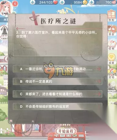 进入医疗所之谜活动副本后,首先回答一系列来自医疗所的提问,问题没有正确答案,你可以随便选,完成这个步骤后,领取奖励,就能获得狡黠天使套装的半折优惠。
