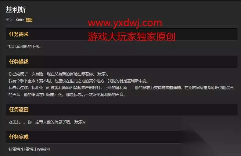 任务完成地点 玩家需要重新回到诅咒之地,然后前往诅咒之地最西边的洞穴。 那里又名为盘蛇谷。走到盘蛇谷的洞穴的最深处。 带上上一个任务给你的阿弗拉沙碎片,然后你会看到一只精英地狱犬。 地狱犬名为被诅咒的基利斯,是一名精英怪,你最好需要组队和它进行战斗。 击败它之后会出现基利斯的灵魂,和它对话就可以完成任务了。