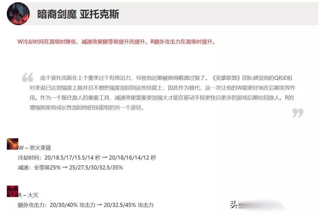 从13.1版本开始,剑魔各个方面都被削弱了。再加上战士装的削弱、重伤装的强化、混乱中砍buff,剑魔国服胜率一路下滑,13.6版本胜率惨不忍睹。 49%,辉煌不再!有玩家开发出了冰拳剑魔的打法,增强了剑魔团战的能力,至少不会在团战中突然死亡!
