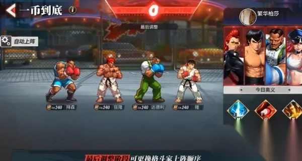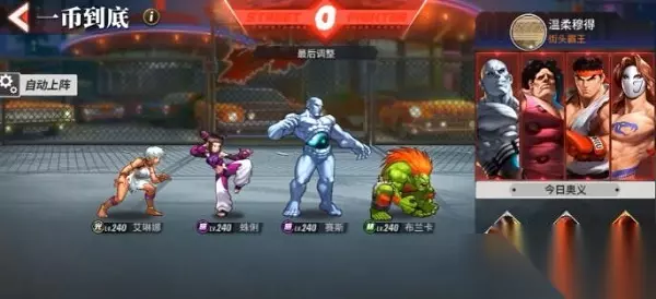 一币到底玩法中只需要投一个币便可玩一下午,在一币到底玩法中该怎么搭配阵容?不同类型的战队该如何搭配,接下来小编就给介绍下街霸对决游戏中阵容的搭配。
