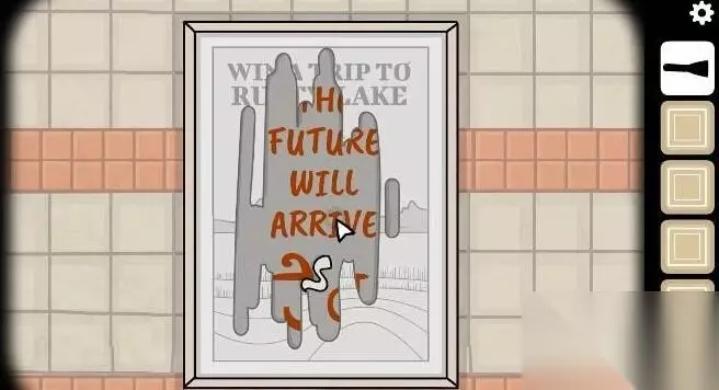 7、返回到与婴儿车这儿,在如图的墙壁将纸刮下来可显示今后将来临的字样。