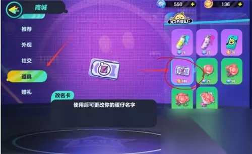 2、大家进入商城页面以后,大家找到属于自己的【游戏道具】点击查看以后,大家就可以看到【改名卡】。