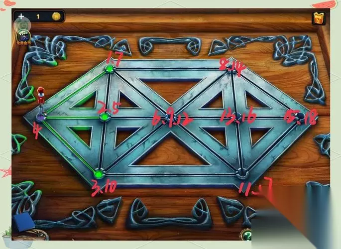(图片来源网络,侵删) 密室逃脱6第八关怎么过 第8关油画的秘密 密室逃脱探索地库6攻略是什么? 密室逃脱6第9关通关攻略 密室逃脱6第9关怎么过 1. 仔细观察环境:在游戏中,你需要仔细探索房间的每一个角落,寻找线索和道具。不要忽略任何细节,有时候一个不起眼的物品可能就是解开谜题的关键。 2. 灵活运用道具:在游戏中,你会收集到各种道具,如钥匙、锁、镜子等。要记得将它们放在合适的地方,有时候一个简单的道具就可以解决一个复杂的谜题。 5. 保持冷静:在游戏中,你可能会遇到一些令人紧张的情况,如时间紧迫、线索难以找到等。但是要保持冷静,不要慌张,否则可能会错过重要的线索或者做出错误的决定。 1.在进入密室逃脱6第八关后,我们见到这样一个再正常不过的画面,比较吸引人注意的就是墙上的几幅油画,想必也是大有深意。 老规矩,密室逃脱6第八关需要注意的地方小编已经为大家标注出来了。 2.点击放大画面中的绿植,将盆栽移到如图所示的最后的圆盘位置,在它前面地板上有一个暗格,打开暗格找到一个雕像。 3.在绿植的斜前方的桌子上有一个花瓶,用雕像砸碎,点击获取里面的小刀。 4.接下来我们就要去调查油画了。 在楼梯二层有两幅油画拼图,很简单没有任何难度,很快就拼好之后油画移开,看到这样的两个提示。 首先是第一幅即左边的女士油画。 接下来是右边的男士油画。 虽然我们很清楚左边的提示与密码有关,但是小编跟大家一样一时间无法正确理解这个提示的含义,因而也有了密室逃脱6第八关怎么过的疑问。 那第八关密码究竟是什么呢?我们继续往下看吧。 5.在桌子侧面我们可以看到有一个密码输入框,在它的上方有一个提示“TIZIAN”。 联系之前在右边男士油画旁边看到的图案提示,我们可以得到密码“271743”。 那271743是从何而来的呢?其实很简单,就是运用了对角线的原理。 6.输入密码271743,机关打开,获得里面的卷轴。 7.你以为进行到此油画的作用也就算是完成使命了?那你可就错了!别忘了一楼还有一幅油画,这可是决定了密室逃脱6第八关怎么过必不可少的一部分!用小刀划开油画的画布,露出后面隐藏的机关。 那这个机关密码是什么呢? 8.接下来就是密室逃脱6第八关的一大难点了,能否解开这个谜团就是决定我们能否通过第八关的关键性因素。 打开之前所获得的卷轴,根据卷轴上的提示得到数字8239(6519+6629-4909)。 9.同理根据油画旁的提示来解密。 10.点击改变机关上的图案,使其图案分布如下图所示。 11.机关打开,点击获得里面的钥匙。 12.既然有了钥匙那就速速走上二楼打开大门过关吧! 从捡到金币开始:去村庄大厅椅子上得到油,左边台子上的得到指甲油,前面得到的金色小人去打开村庄旁边的浮岛。 浮岛里得到雕像,绑好秋千,点击秋千得到斧头。 回村庄广场放好雕像得到补网。 回浮岛,用油润滑门上的铁锈,用补网得到人脸标志。 去火山,得到火焰之心。 进浮岛第二场景,得到损坏的叶子,右边信箱得到绳子,把指甲油倒到绳子上,得到酒精绳,中间方向牌那里得到镊子,回村庄左边房子。 用镊子打开箱子,得到炸药。 去战场大炮那里,先倒入粉末,放上绳子和炸药,去岩浆缝那里点燃。 回到浮岛信箱,得到游戏部件。 进入右边浮岛,破房子里得到镐杆。 把坏的桨叶给打铁的,去火山,用镐杆得到煤。 回到打铁这里把煤给他,得到桨叶,回到浮岛第二场景,修复桨叶。 进浮岛左边新场景,得到玫瑰树,上好弩箭,右边的山洞玩游戏后得到母亲雕像。 进入浮岛桥里面,点击小女孩,得到妖爪。 进入吊起的铁箱后面,用妖爪画木桩,得到柠檬,用小刀划开柠檬得到半边柠檬,点击石柱,得到塔。 透镜那里捡到钩子,用柠檬酸化铁箱底部,得到齿轮,把齿轮上到左边的仪器上,让铁箱掉下来。 回到村庄广场,用斧头劈柴,得到木柴,去酒馆,得到扇子,锅,扳手,塌陷的地方得到铲子,酒桶那里得到钓竿,钓竿和钩子组合;在把锅放在火架上,上木柴,扇子扇,得到黑锅。 去火山石像那里,用铲子得到颜色。 去配颜料那里用扳手,得到黑白杯。 去浮岛用白色杯得到粉末和杠杆。 回村庄大厅,在地毯凸起处,用杠杆得到刷子,去酒馆,用黑色杯和刷子得到黑色粉末。 去村庄外面,蘑菇那里用钓竿得到照相机,回酒馆,用照相机拍照得到照片。 去浮岛女妖的巢,放上照片玩游戏得到金属翼。 回村庄左边房子上好金属翼得到钥匙,用钥匙打开左边的箱子得到石碑。 用石碑去进那里打开地下城。 进入地下城小屋得到娃娃和踏板,用踏板打开门,点击女人得到魔法锤。 1.进入第九关之后,我们首先点击画面左边地上的黑色旅行包,拉开拉链,得到一个白色的方块,别看它不起眼,实际上作用不小哦。 2.将这块白色方块放在门边的开关上,顶灯被打开后,我们就可以进入Bank Escape第9关画面右边的小房间了。 在房间里的茶几上目前可见的有三件物品,从左到右依次是三脚架、白色密码箱和方形水杯。 拿走三脚架。 3.移开水杯,露出下面的红色按钮。 点击红色按钮,旁边的机关也随之打开,获得里面的钥匙,而钥匙上的标签告诉我们这是BI柜子的钥匙 4.接下来退回至Bank Escape第9关游戏主画面。 用这把BI钥匙打开对应的柜子,里面又是一个白色密码箱。 不过我们并不知道它的密码。 将密码箱拉出来,在密码箱上方有一面镜子,点击获取。 将镜子与三脚架合并 5.在游戏主画面