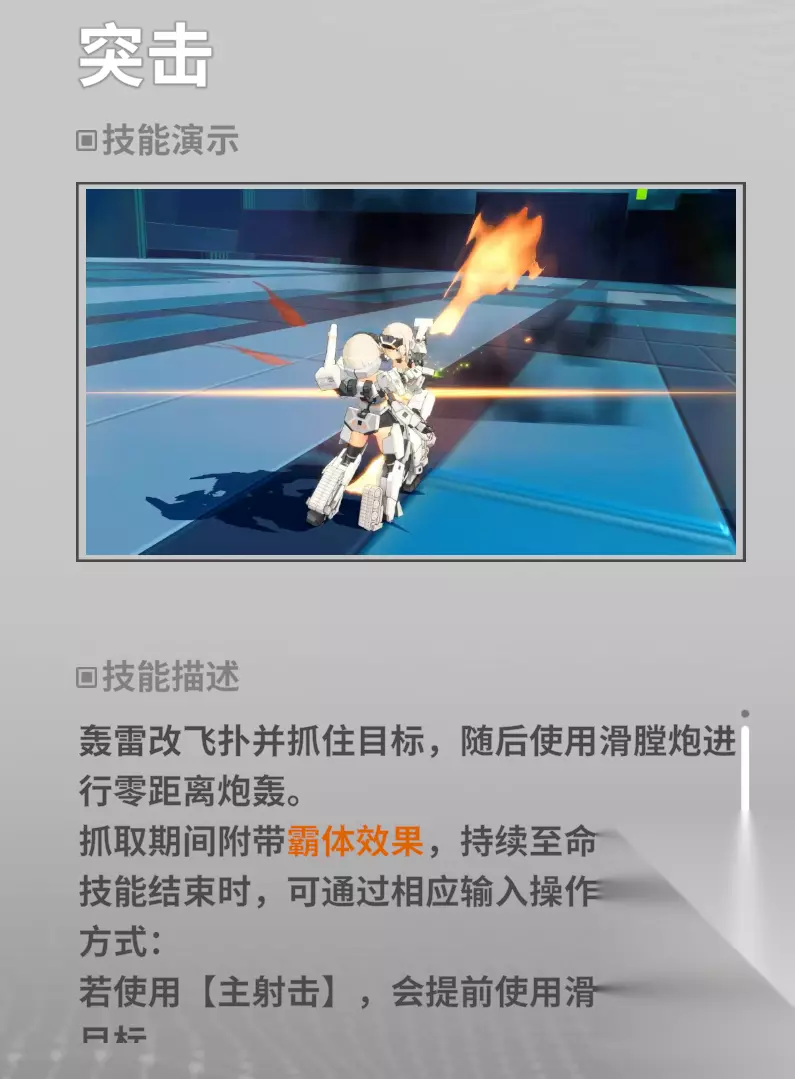 而这个武装还不止于此,在轰雷移动+洒弹幕的时候,还可以自由选择时机释放派生,格斗派生是结束洒弹幕动作,朝目前霸体冲刺,抱到了以后拉着对方爆了(物理意义)或是扔出去,两者都是非常不耐cut的格斗动作,实战中一般只用于应对敌方冲脸单位。