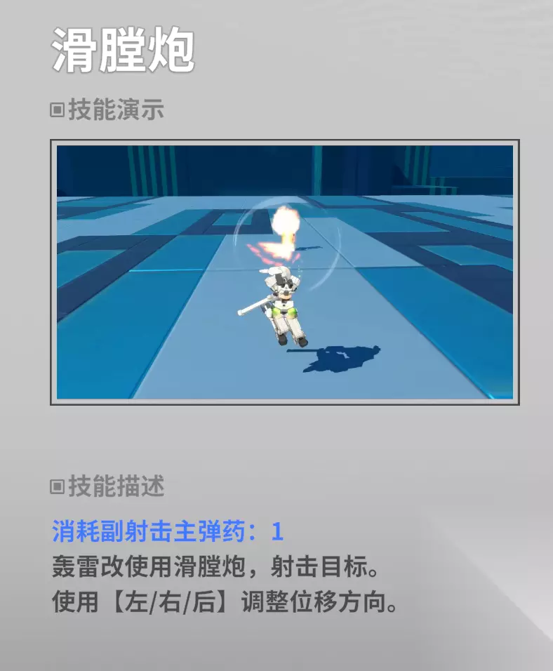 副射是实弹武装,使用后有一个体操动作,可以朝左右后三个方向位移一段距离,一命后可以空槽使用,是非常不错的射击战武装。