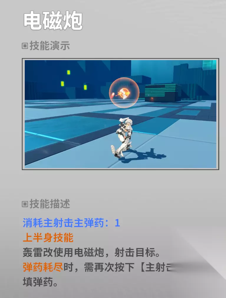 主射是18号同款的手动装填式实弹枪,虽然性能上比18号弱一截,但理论上无限子弹的武装让轰雷只要能缩住+苟住就能有战斗力。