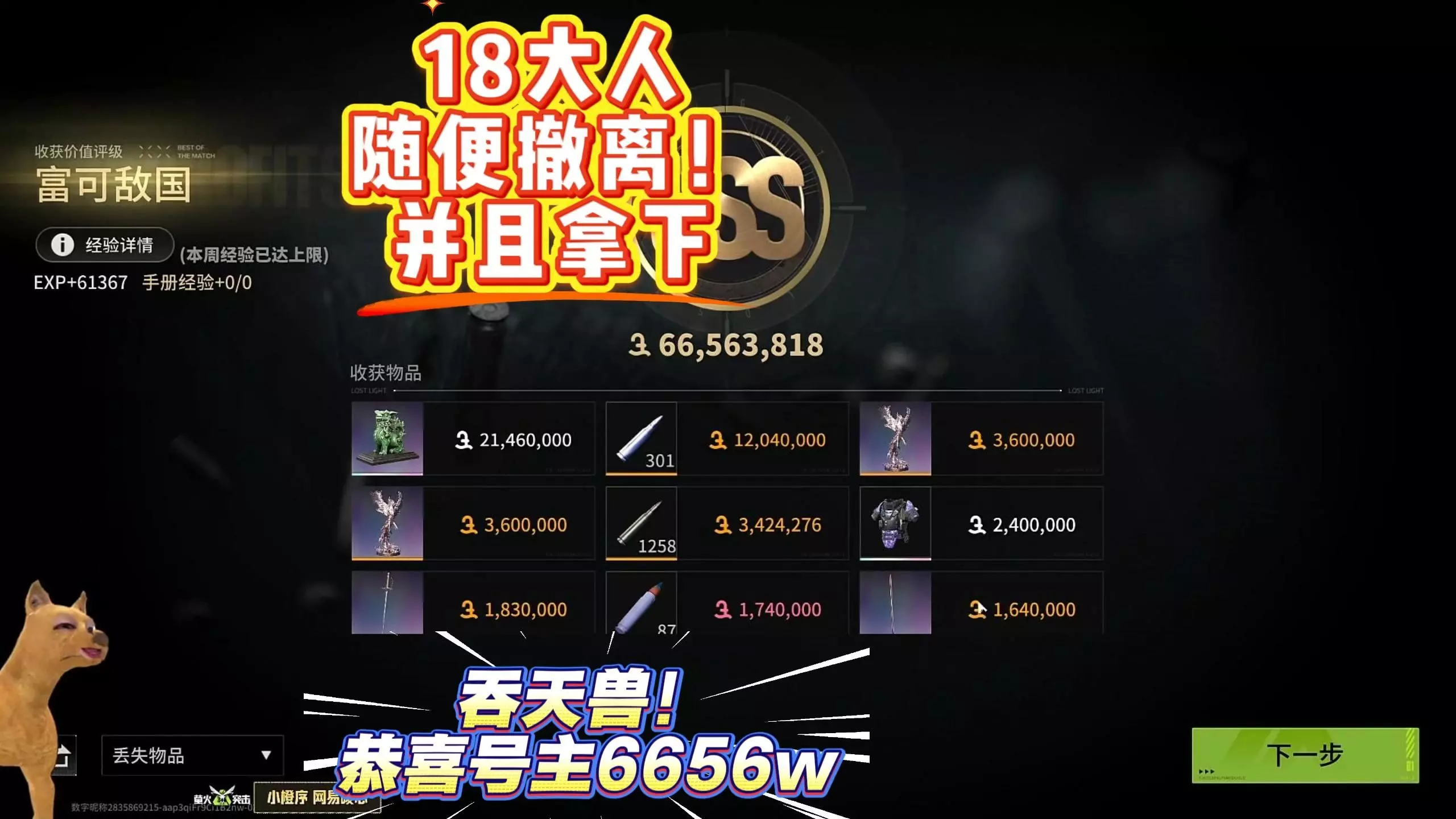 这是《萤火突击》的游戏内容,玩家展示对局中收获了巨马、双猪等高价值物品,感慨游戏工作室收益暴力,还呈现了追击敌人、战斗等游戏过程。