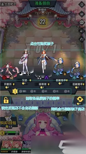 左侧点“铜锁”能锁定商店,锁了就不会自动刷新。 点棋子花金币就能买,简单直接。 右侧点“刷新”按钮,花金币刷新商店里的棋子。 招募面板下方有抽卡概率,各品质棋子抽到的几率不一样。 买完棋子得选出来,派上场才行。