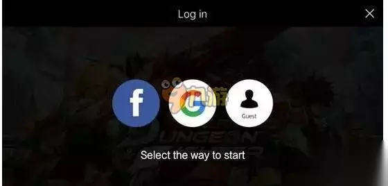 然后会有如何选择创建账号的方式,如下图,分别是FB,Google,以及guest游客登陆。没有前面两种账号的玩家,可以选择最右边游客登陆,即可创建账号。