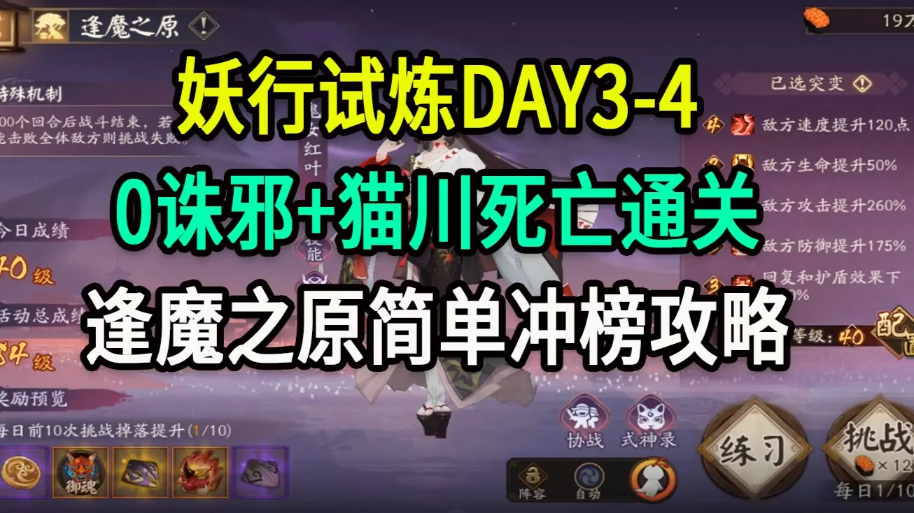 这是阴阳师妖行试炼最后两关的攻略,提供了4/5关20突变通用、30突变第4关水涧、30突变第5关平安京的阵容码,还有20突变混分思路,含式神配置、配速、操作方法,可摆烂拿奖励。