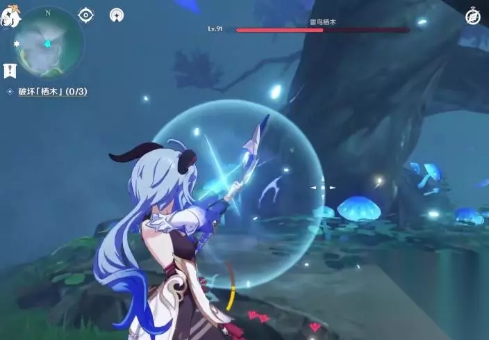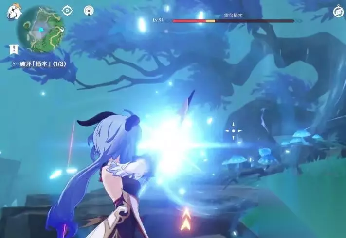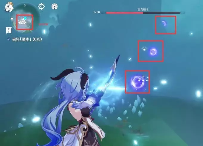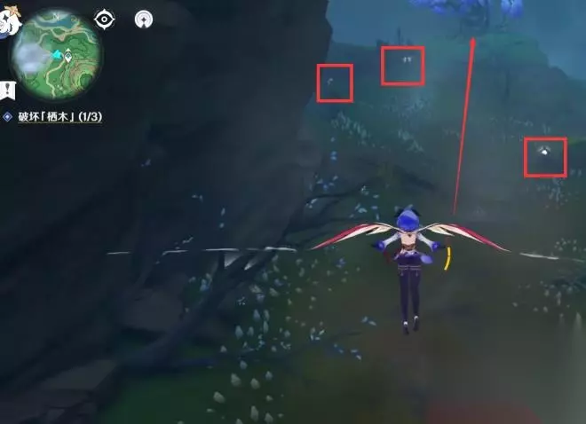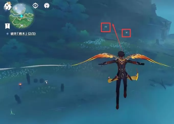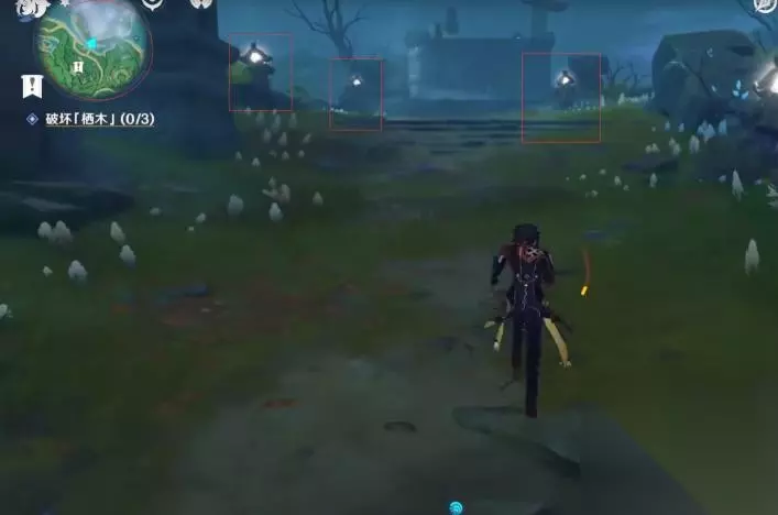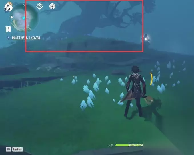 ④所有的羽毛消失后我们回到第一颗栖木的位置继续攻击栖木,第一颗栖木就彻底解锁啦,且这个栖木周围的烟雾也会散去。