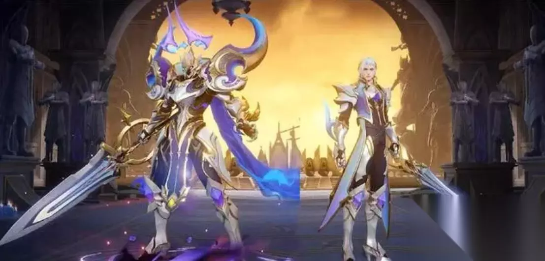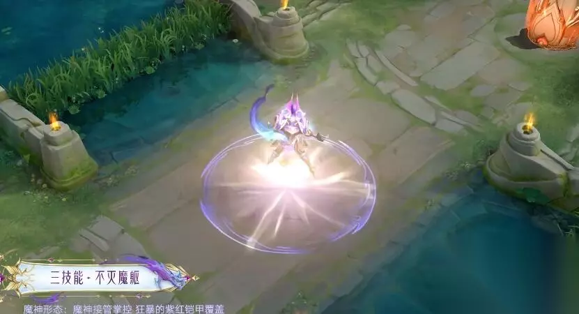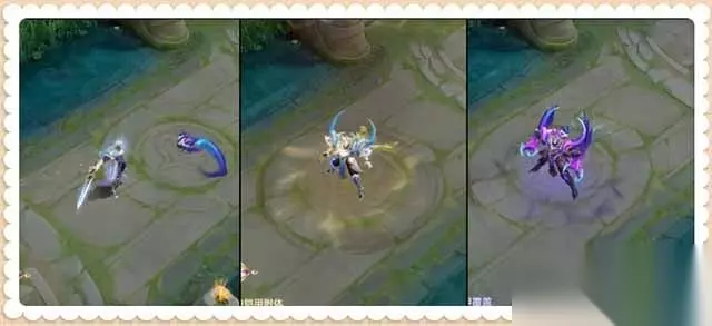 二技能特效: 二技能是白色和紫色作为技能特效,骑士手执圣剑,向前挥砍,铠腾空挥舞宝剑的强势攻击动作;