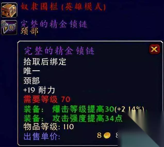 pAO 完整的精金锁链pAO 邪恶意图项圈系公正徽章兑换装备。pAO 完整的精金锁链英雄模式奴隶围栏BOSS夸格米拉出品。pAO 推荐的这两款装备个人认为的话邪恶意图项圈毋庸置疑是完美的,但是在你命中等级够的前提下如果你想要提高暴击等级的话那么我想这款奴隶围栏BOSS夸格米拉出品的完整的精金锁链也将会是你不错的替代品,关键拿了它你也可以省去部分的牌子去兑换更加优秀的其他装备岂不是两全其美的事情。经典项链你值得拥有,推荐指数满天星辰。pAO ③肩部装备:废土行者肩甲pAO