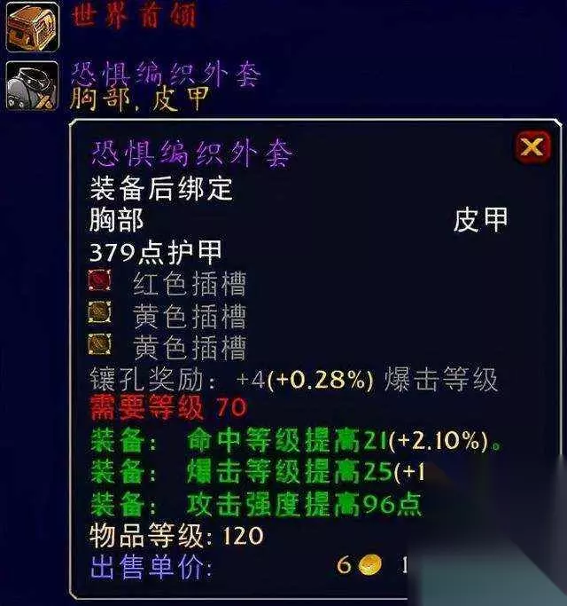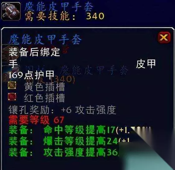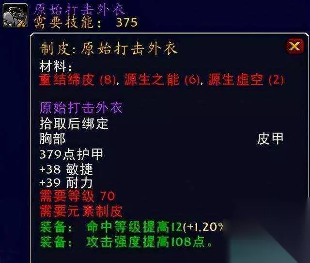 pAO 恐惧编织外套pAO 原始打击外衣系元素制皮专业出品。pAO 恐惧编织外套系世界首领末日行者出品。pAO 对于这两件装备的话首推肯定还是要属于原始打击外衣的,毕竟盗贼选择制皮装备的话真的是一点毛病都挑不出来,当然你要是地精玩家想要更为高级的追求的话就当喵叔我什么也没有说。这件装备的话成本低收益高,非常的值得入手。而另外一件装绑的恐惧编织外套的话就有点难搞了,非土豪玩家不能拥有,而且的话是极品中的极品装备,属性全无却坐拥三大插槽附送4点爆击等级提高,高命中高爆击高攻强毋庸置疑堪称恐怖如斯的装备,推荐指数满天星辰。pAO ⑥手腕装备:夜幕护腕pAO
