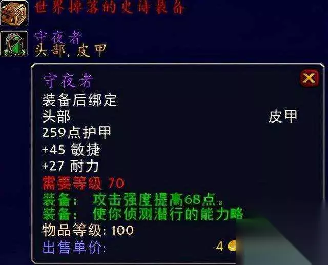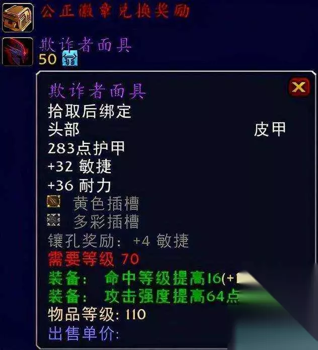 pAO 守夜者pAO 欺诈者面具系公正徽章兑换头部装备。pAO 眼镜蛇鳞片兜帽系制皮专业出品装绑头部装备。pAO 守夜者系世界掉落的史诗装备。pAO 这三款头部装备的话首先推荐的肯定是要属于牌子换取的欺诈者面具,毕竟一个多彩插槽以及一个黄色插槽加持附送4点敏捷的话着实不错,总体上来说是要优于后两者的,当然如果你是一名土豪玩家的话那么我想不乐意刷牌子的你也可以前期早早的就入手我们的装绑装备眼镜蛇鳞片兜帽和守夜者,都是前期顶呱呱的装备,高敏捷高攻强,特别是眼镜蛇鳞片兜帽还补充了18点的命中等级提高着实不错。三款经典前期盗贼BIS头部装备推荐给大家,届时可以根据自己需求来做出一个选择,推荐指数满天星辰直戳天花板。pAO ②颈部装备:邪恶意图项圈、完整的精金锁链pAO