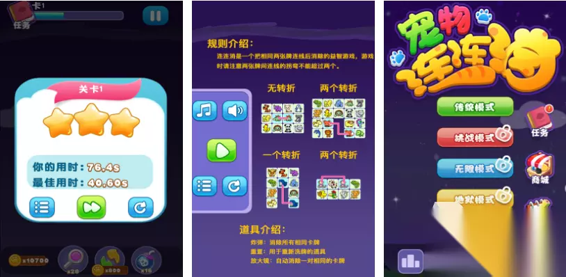连连看的玩法和果蔬元素是不是很相配呢?这款连连看手游中可连接的物品都是果蔬哟,清新有趣的游戏画面配合很欢快的BGM,让玩家体验的每个关卡都充满童趣。小朋友们还可以借机认知不同的水果蔬菜,这款色彩缤纷的果蔬连连看游戏可谓老少皆宜,简简单单的连线玩法使小白玩家们也能上手就会。 高速下载 普通下载 优先233乐园APP下载 3、《宠物连连消》