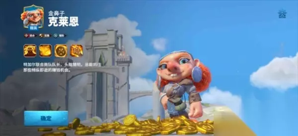 8、克莱恩 克莱恩是秩序联盟阵营中的一位综合英雄,其天赋类型为综合、采集和辅助。 克莱恩属于经济型英雄,游戏中的主要定位是从事采集等后勤工作,能够大幅提升各项资源采集效率,尤为擅长采集金币。