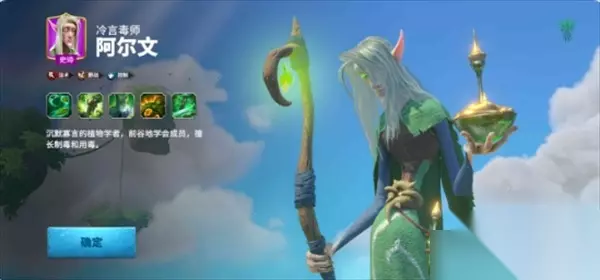 4、阿尔文 阿尔文是来自圣泉之翎阵营的一名法师英雄,天赋类型为法术、野战和控制。 阿尔文能够利用主动技能和持续性特殊效果对单体目标造成伤害,同时限制与削弱对手,游戏中的主要定位为输出+控制。