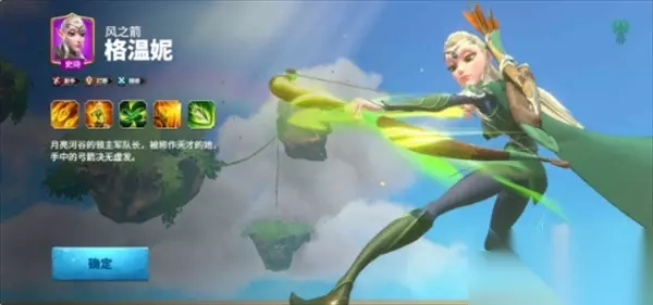 4、格温妮 格温妮是圣泉之翎阵营中的一名射手英雄,同时也是该阵营的初始英雄,天赋类型为射手、打野和精密。 游戏中格温妮的主要定位为野战输出,擅长利用主动技能和普通攻击对目标造成单体伤害,同时与黑暗灵和黑暗生物作战时拥有额外增益,适合用于游戏前期开发过程。