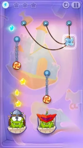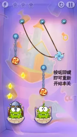 然后割掉第二条绳子,风刃刀切断中间糖果上的铁链即可过关。
