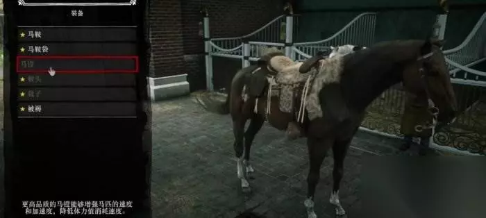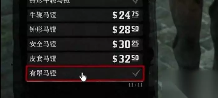 随后来到马厩,选择预购马鞍,点山狮皮长途鞍,然后选装备,我们会发现马镫选不了。 重点来了:鼠标左键狂点马镫,另一只手狂点上下键,就能卡进马镫选项里。
