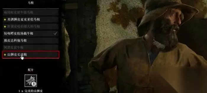 拿到三星完美山狮皮后,到任意一个捕兽人处将其卖掉,然后制作山狮长途鞍。