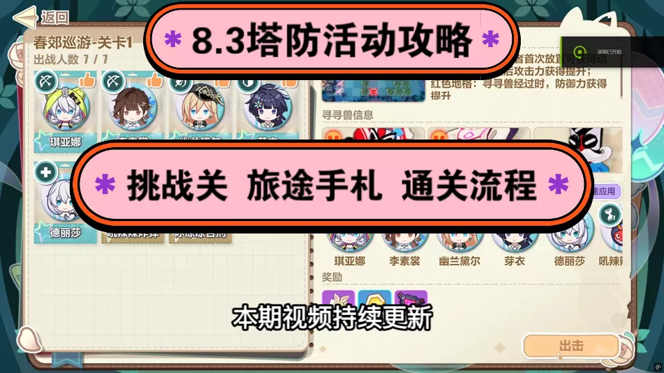 游戏:崩坏3 持续更新祝福与心愿的访途 8.3塔防活动 主线通关流程,点击视频下方选择关卡分集。活动操作技巧可以看上午发的入门视频BV1QZjyzuEKd