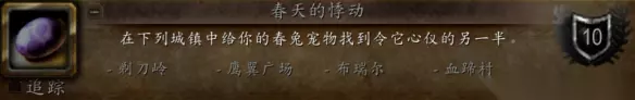 5、春天的悸动 带着彩蛋宠物【春季兔脚】,在对应的四个地点找到同样拥有该宠物的玩家。 部落玩家: