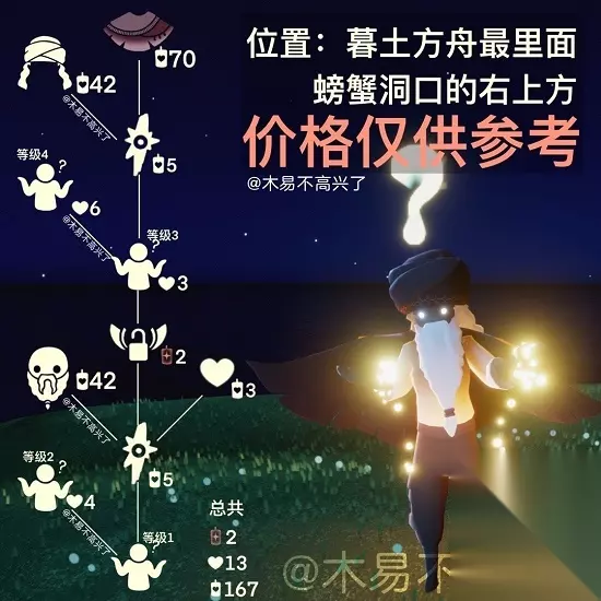 2、先祖位置 就在墓土方舟螃蟹洞口的右上方 以上就是光遇3月10日复刻先祖兑换图分享了。看到这里的玩家快进入游戏中去积攒兑换用的蜡烛吧。