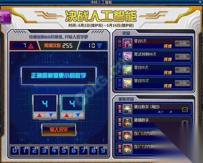 dnf决战人工智能有什么技巧,严格来说这并不是一次就猜对,而是利用数字上限...金刚GO预测次数上限为255,第256次后会归零只要在256次时完成夹逼至1~2个数字,就可以在归零后1~2次内猜中啦,下面就一起来看看介绍吧。 还能多白拿256个buff药剂哦 依然可以每天测三个数字,每次都拿5个金牌不是梦,圣雄甘地们上吧。图示如下: