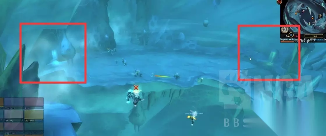 大概位置如图,需要用点名小圈,出石柱子的技能,去和节点重合站,然后就可以激活成就,需要在boss第一次湮灭的时候激活3个点位,然后正常流程boss 每激活一个点位的时候会出来一只很弱的小怪,打死就行,第一阶段确定成就激活后,湮灭后开YY 3号