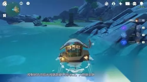 3.跳下浪船 控制好方向后长按跳跃键1.5秒以上,人物就会跳出浪船来到岸上了。